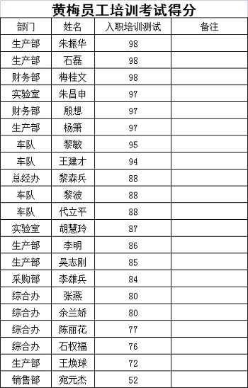 以下是此次培訓(xùn)人員成績(jī)統(tǒng)計(jì)表圖片: