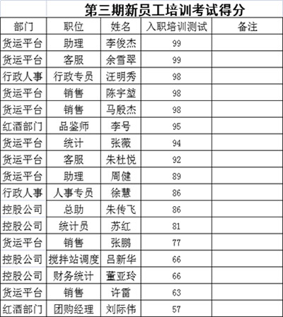 以下是此次培訓(xùn)人員的試卷分數(shù)與講師評分表圖片: