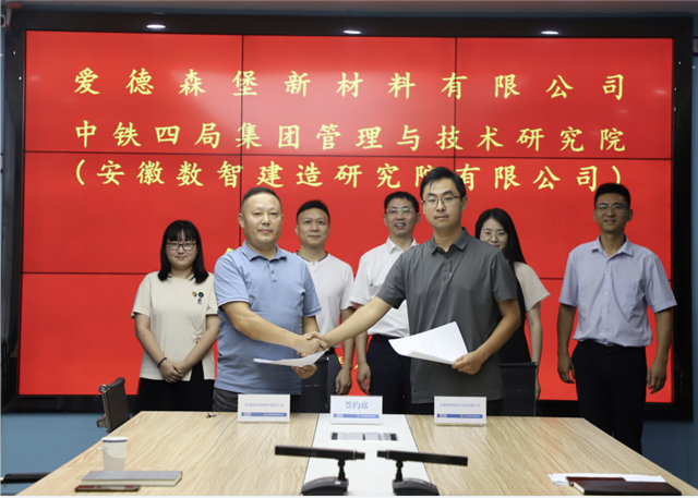 2022年9月5日,愛德森堡集團與中鐵四局集團管理與技術研究院,就愛德森堡集團旗下兩家新材料公司的數(shù)智化園區(qū)建設,達成500萬戰(zhàn)略合作協(xié)議。中鐵四局集團管理與技術研究院院長耿天寶和愛德森堡黃梅新材料有限公司總經(jīng)理吳虎分別代表雙方簽約。