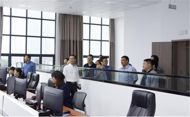 在黎總的帶領(lǐng)下,郭局長(zhǎng)、孫書記及各鎮(zhèn)園區(qū)分管經(jīng)濟(jì)領(lǐng)導(dǎo)一行對(duì)愛(ài)德森堡新材料有限公司的多功能智慧指揮中心、物流調(diào)度中心和三樓中央控制室項(xiàng)目現(xiàn)場(chǎng)進(jìn)行了參觀。