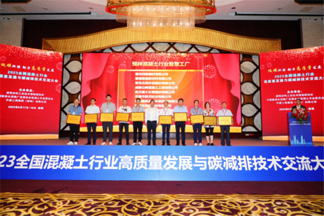 5月17至19日,由建筑材料工業(yè)技術(shù)情報(bào)研究所、中國(guó)散裝水泥推廣發(fā)展協(xié)會(huì)混凝土專業(yè)委員會(huì)、中建三局集團(tuán)(深圳)有限公司主辦的“2023全國(guó)混凝土行業(yè)高質(zhì)量發(fā)展與碳減排技術(shù)交流大會(huì)”在深圳市隆重召開。本次大會(huì)以“低碳環(huán)保 助力高質(zhì)量發(fā)展”為主題,共邀500余位代表參加了此次盛會(huì)。愛德森堡集團(tuán)副總經(jīng)理黎海峰、研發(fā)事業(yè)部副總裁丁玉峰應(yīng)邀參加本次會(huì)議。愛德森堡在此次會(huì)議的頒獎(jiǎng)典禮上,榮獲“預(yù)拌混凝土行業(yè)智慧工廠”稱號(hào)。