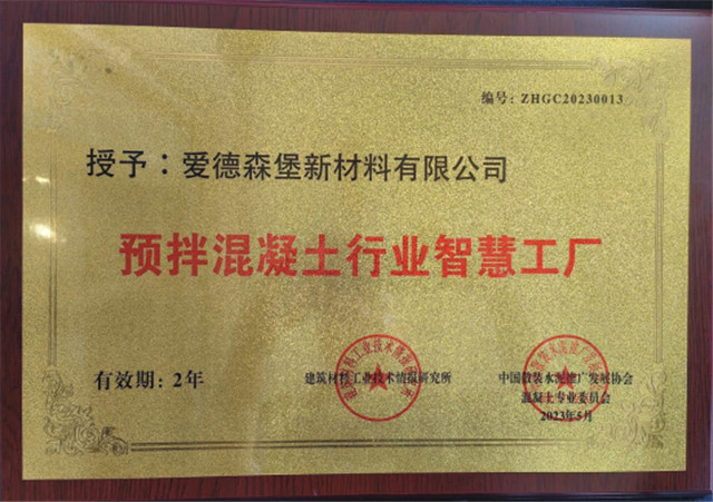 愛德森堡喜獲“預(yù)拌混凝土行業(yè)智慧工廠 ”稱號(hào)